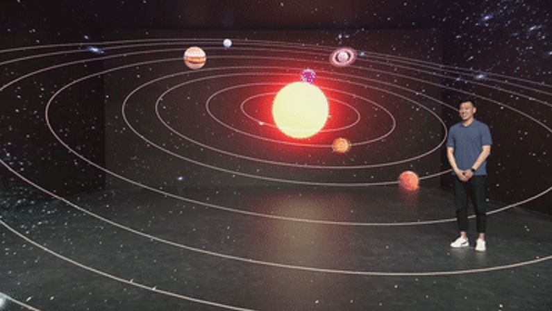 德火DRS系统为拍摄提供“场景高匹配“,达到实时合成,毫无压力。前景虚拟植入画面基于云台跟踪,拍摄方式通过前后景画面的无缝匹配,使得主持人仿佛置身于火星表面,在演播室实时呈现虚实结合,“所见即所得”。